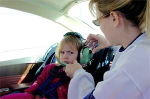 | "Oh boy, oh boy. I get to for a ride in the airplane!" | "Mom! Quit messin' with my head phones." | |